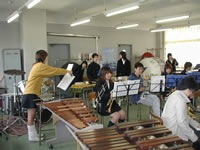 | Q:3年生に対してステージ上で、ある意味の卒業式を行ったわけですが、あの演出は生徒たちと考えるわけですか? A:そうなんですが、今年はあれで3年生が皆泣き出してしまって、呼吸も乱れたので、来年はアンコールの前にする方がいいですかね? (と、私に聞かれても、ちょっと困りますが...) やはり、楽器を演奏する時は、精神状態が出ますからね。 Q:3年生が抜けて、1・2年生が主体となりますが、今後はどういった方針で運営される予定ですか? A:3年生は数は少なかったのですが、皆、しっかりと演奏する子たちでしたから、その穴は大きいですよ。ただ、残る子たちも、その背中を見てやってきていますから、それほど心配もないと思います。卒業生たちの姿勢を見習って、継承してくれるでしょう。 どうもご協力ありがとうございました。また、お邪魔します! |