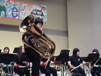 | 1年生・長谷山晴彦くんは、以前訪問させてもらった時に『男子部員増殖計画』なるものを企んでいると言っていた。 Q:どうやら1人増えたみたいだね。 A:ええ、何とか。でも、まだ増やしたいです。 Q:今日の演奏会はどうだった? A:OBさんとのジョイントというのは初めてだったのでかなり緊張しました。 Q:これからの目標を教えてくれますか? A:まず卒業式のBGMとSpring Concertですね。そのあと、もしかしたら大岡祭に出るかもしれません。 |