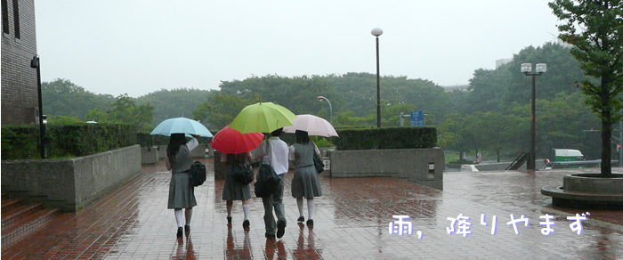 | 4色の傘が雨の中を踊る音符のような...?(会場の茅ヶ崎市民文化会館にて) |