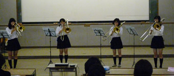 | 達人も登場しての演奏あり、中学3校を含む5校の合奏ありで賑やかで楽しいコンサートでした。 | |